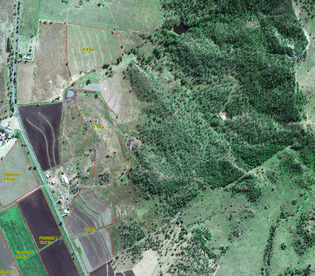 Lindsay finally got the lucerne seed planted in part of paddock 2 (see lower Bimbury map) It was all set to be planted and then we had 100+mm of rain in a couple of hours that washed some of the topsoil from one end of the paddock to the other (on the 10th of the month).