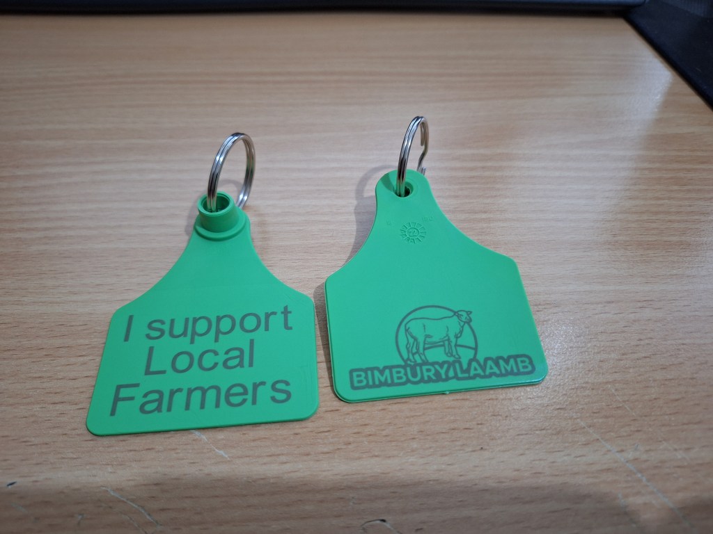 Jack (our son) has been business with his Bimbury Design business etching our livestock tags (NLIS tags, with our PIC (property Identification code) this assists with traceability of livestock within Australia) currently our tags for sheep are not required to be electronic, so the tags represent the year of birth (by the colour of the tag, this year is black) if the animal is a boy it goes in his left ear and girls go in their right. As we lamb twice a year the first lambing get one tag and the second lambing get 2. This enables us to tell at a glance if the animal is male or female, what year it was born and what time of the year it was born.